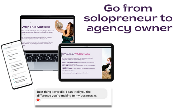 I went from starting my VA business with zero clients to being fully booked in 2.5 months — then scaling to a 12-person agency working with clients all over the world. Everything I teach inside the membership is based on what actually works in today’s market, not outdated theory.
